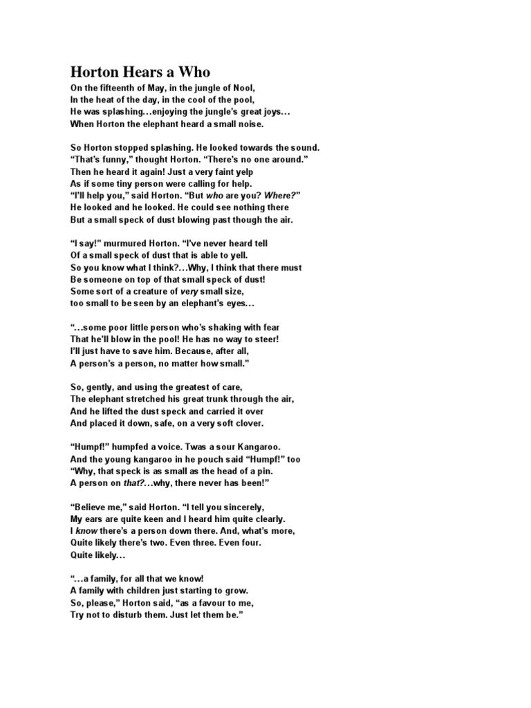 Horton Hears A Who Text Horton Hears A Who By Dr Seuss On The 15th Of May In The Jungle Of Nool In The Heat Of The Day In The Cool